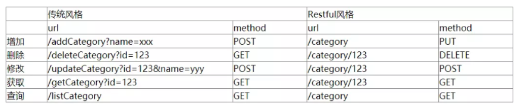 * RESTFUL只是HTTP 的一种承载 改变了资源请求的形式 使用同一个 URL ,通过约定不同的 HTTP 方法来实施不同的业务