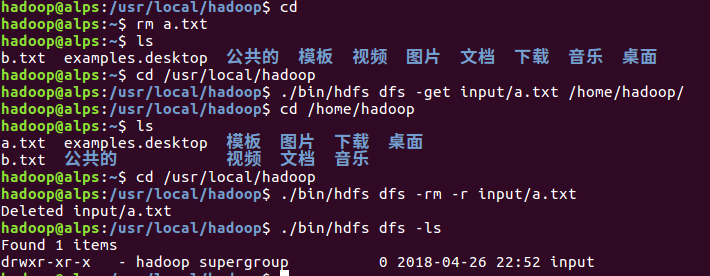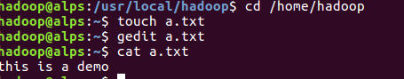1.在本地Linux文件系统的“/home/hadoop/”目录下创建一个文件txt,里面可以随意输入一些单词.