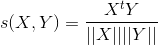 对于向量,由于它不仅有大小而且有方向,所以闵可夫斯基距离不是度量其相异度的好办法,一种流行的做法是用两个向量的余弦度量,这个应该大家都知道吧,其度量公式为: