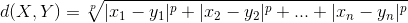 除欧氏距离外,常用作度量标量相异度的还有曼哈顿距离和闵可夫斯基距离,两者定义如下:
