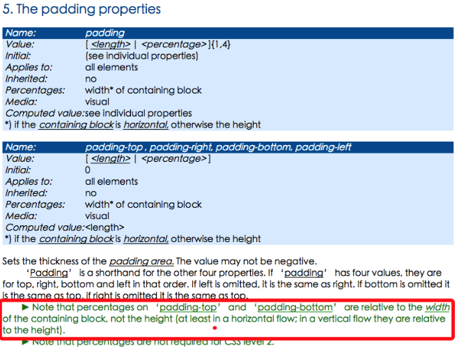 本文依赖于一个基础却又容易混淆的css知识点:当padding/margin取形式为百分比的值时,无论是left/right,还是top/bottom,都是以父元素的width为参照物的!