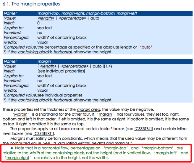 哈,top/left以父元素的width为参照物还好理解,但top/bottom不是以height更符合我们的预期吗?有疑惑很简单,看官方解释: