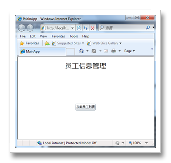 首页打开加载MainApp页面,点击页面上的“加载员工列表”按钮,动态加载EmployeeDataGrid.xap并初始化员工列表,代码如下: