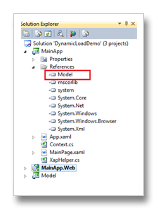 <AssemblyPart x:Name="Model" Source="Model.dll" />
