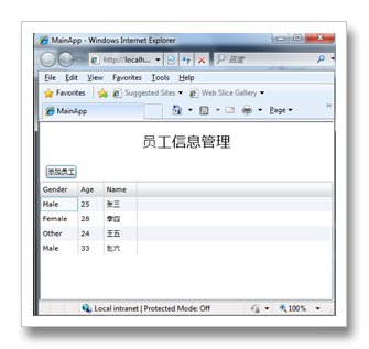 编译之后在ClinetBin目录下会生成EmployeeDataGrid.xap文件。运行MainApp.Web工程,看到下面的页面。