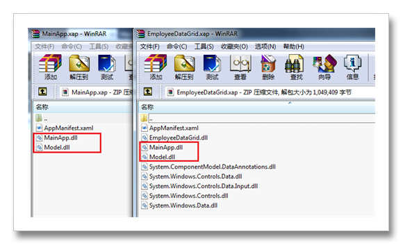让我们回过头来看看MainApp.xap和EmployeeDataGrid.xap中的程序集。