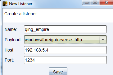 payload要与cobaltstrike的foreign监听器选择相同协议