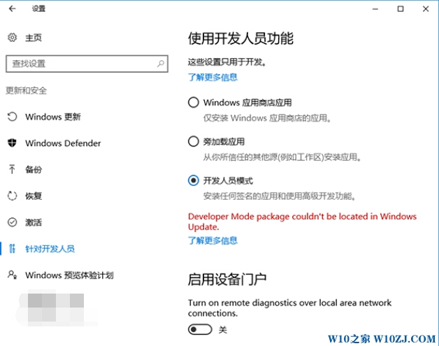 1、没安装Bash的用户可以按照之前介绍的方法,先在设置→更新和安全→针对开发人员中选择“开发人员模式”,点击后会下载“开发人员模式包”,如下图 ——