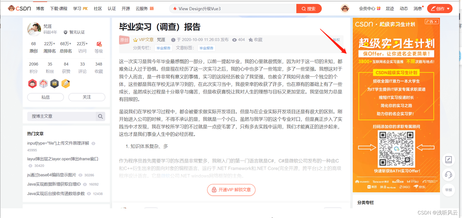 因为经常在C站上查资料,看技术大佬们分享的一些技术干货,有一次在点击一篇博文的时候看到了超级实习生的广告,类似于下图这样的。IT人谁不想进名企?当时特别心动,加了课程老师。