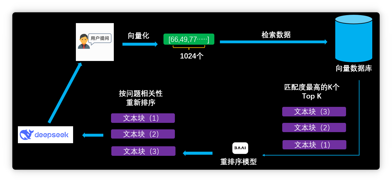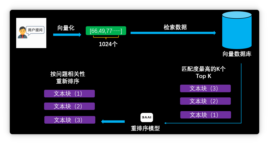 系统将问题向量与数据库中所有向量进行相似度计算,完全基于数学运算。