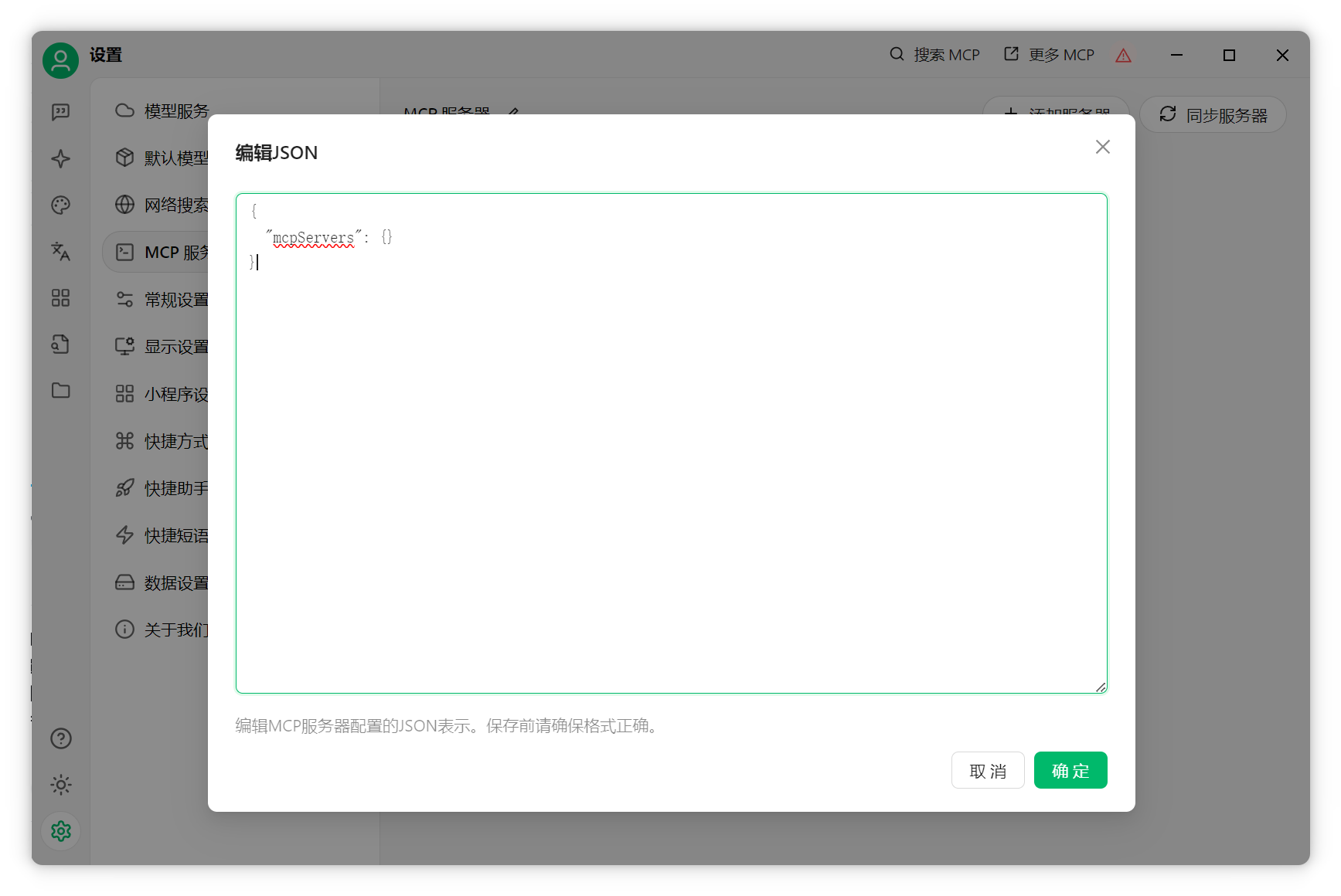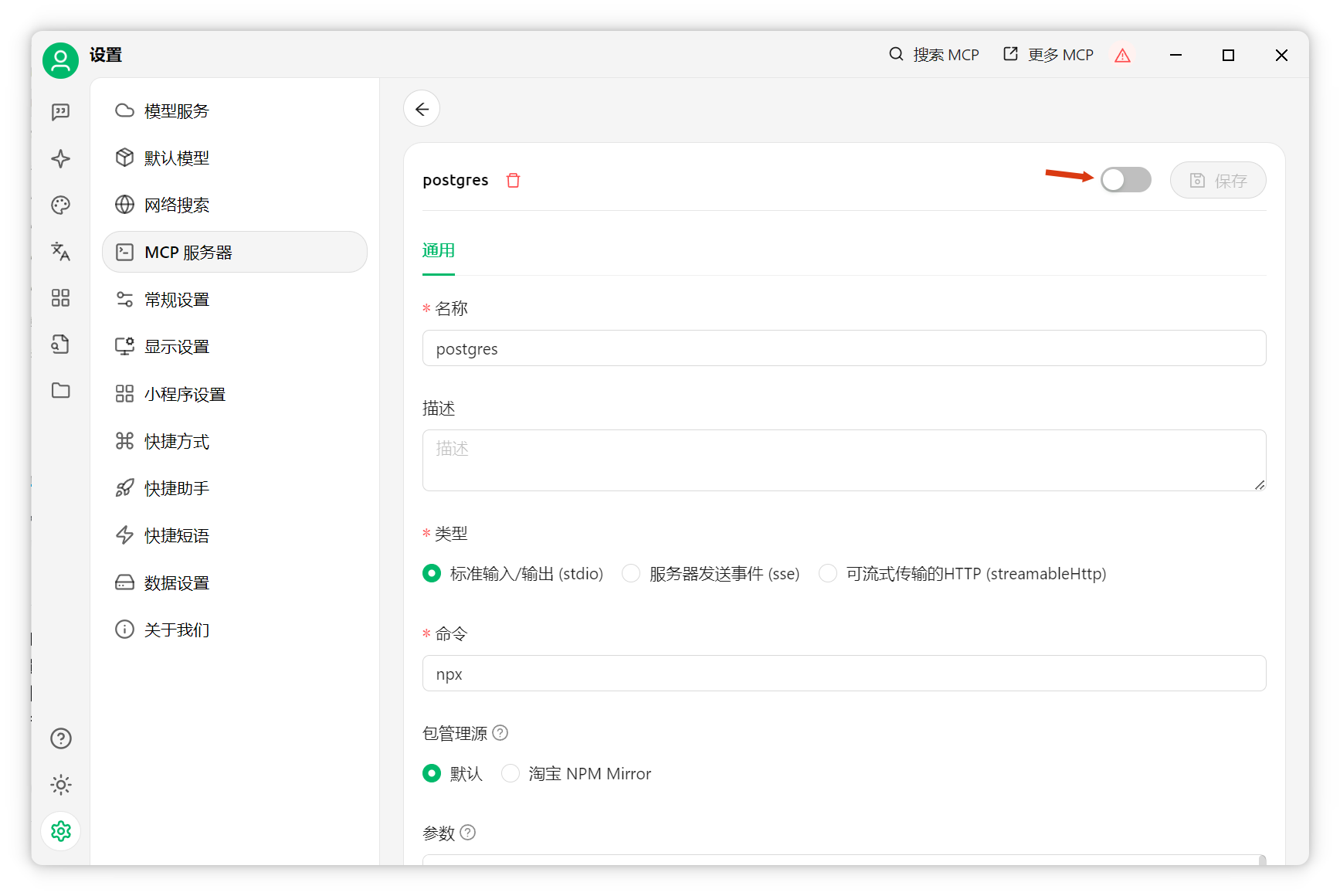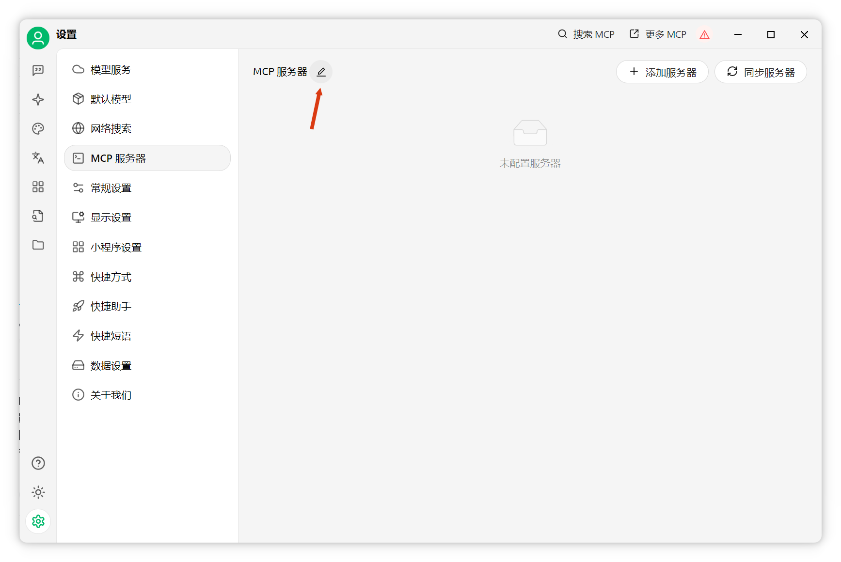 在Cherry Studio配置MCP server,使AI可访问数据库。进入设置,添加MCP服务器。