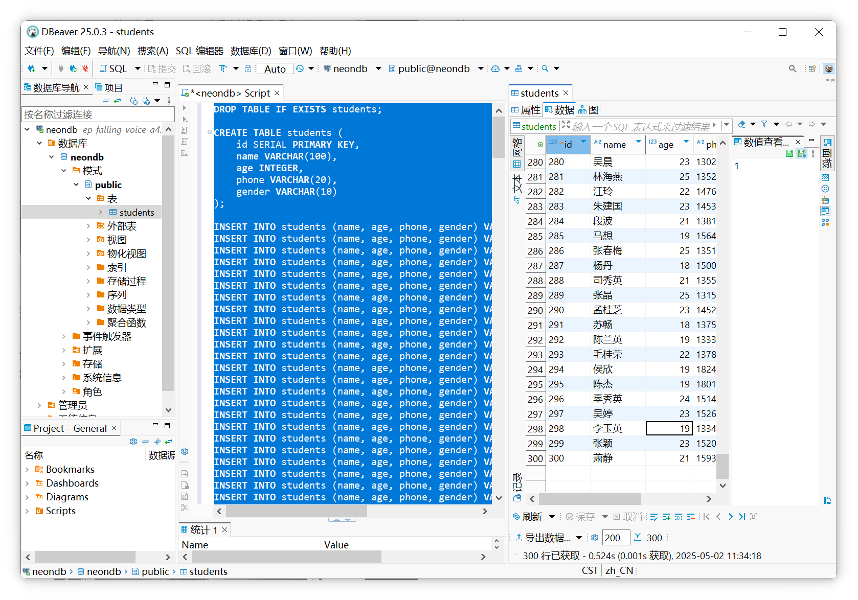 第三个痛点是缺乏全局视角。以AI生成的300条学生统计数据为例:
