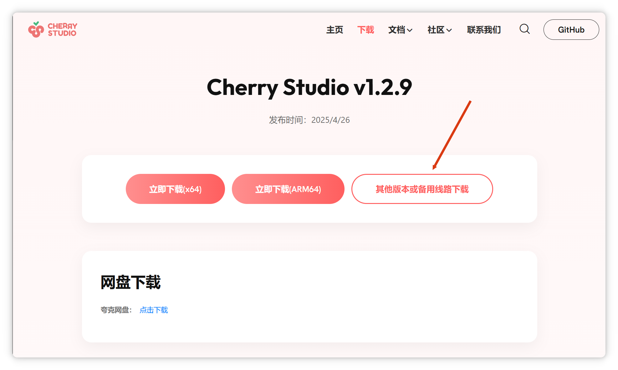 前往Cherry Studio官网下载并安装软件:Cherry Studio