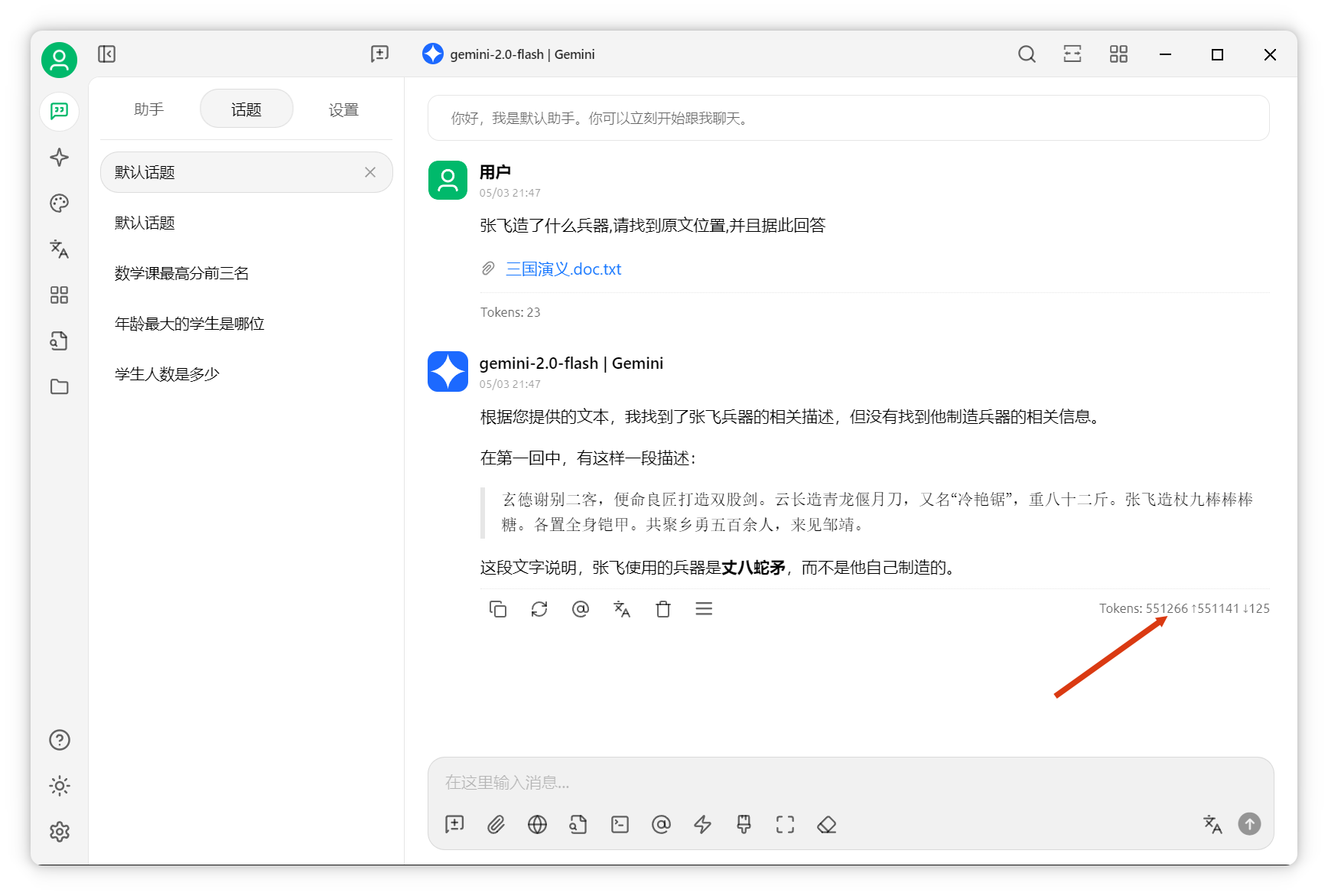 整个《三国演义》仅用了一半上下文窗口。利用Gemini超长上下文进行知识库检索,效率极高。