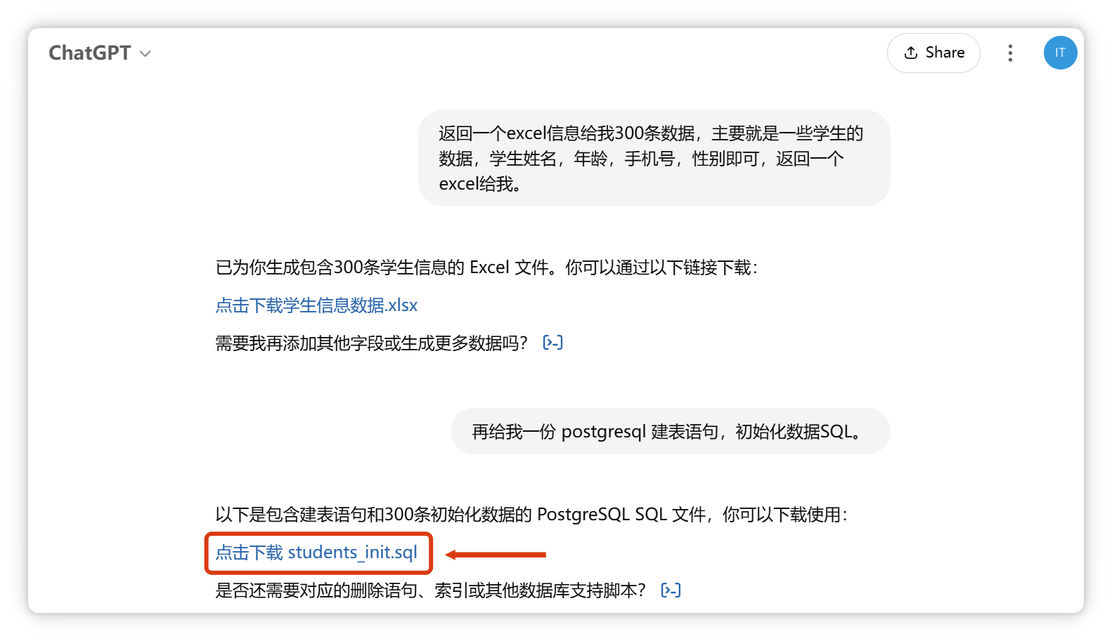 借助ChatGPT将Excel数据转为SQL语句,高效导入数据库。以下为效果截图,敏感信息已脱敏。