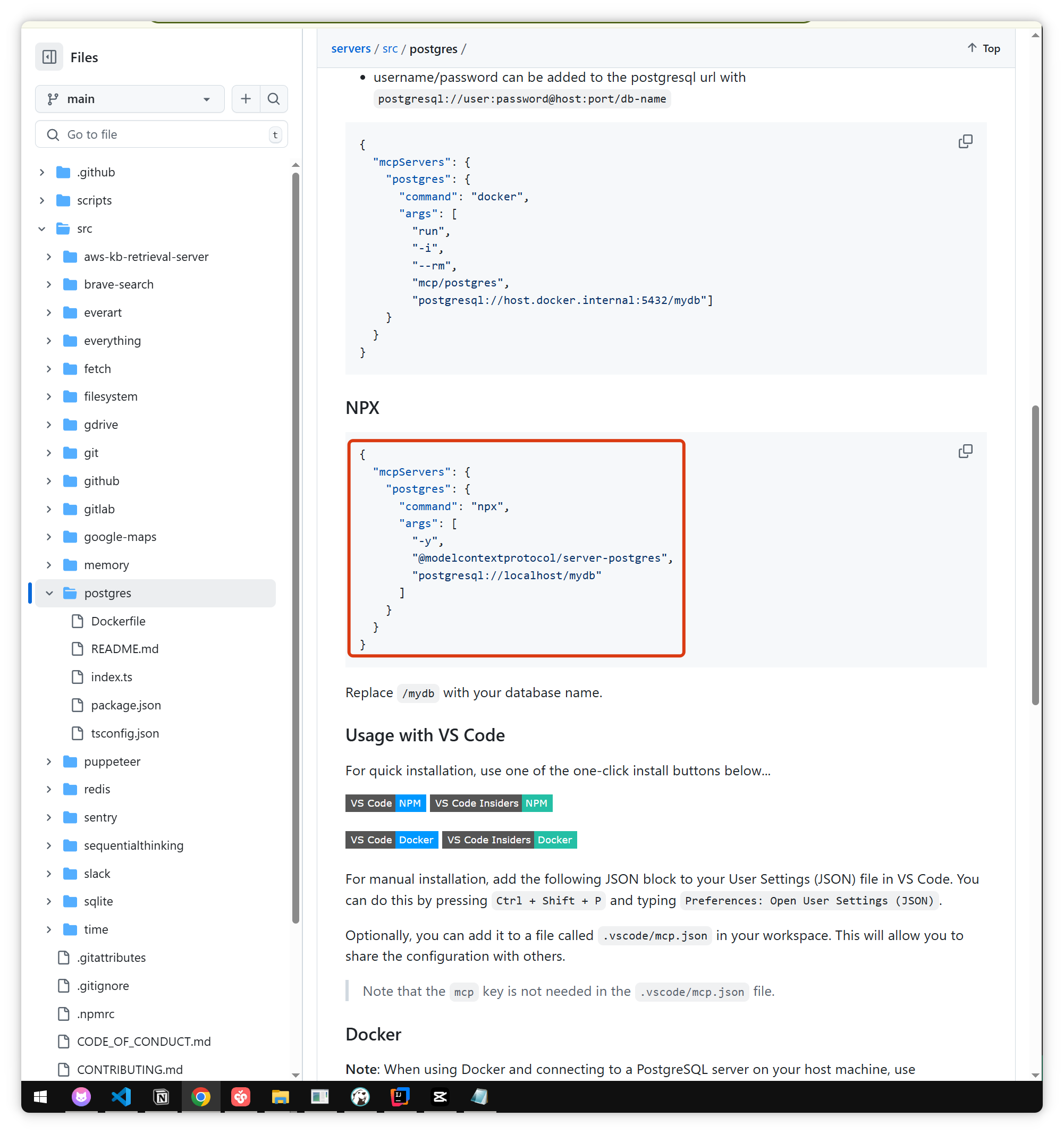 在MCP配置页面查找PostgreSQL MCP。可参考官方GitHub:PostgreSQL MCP