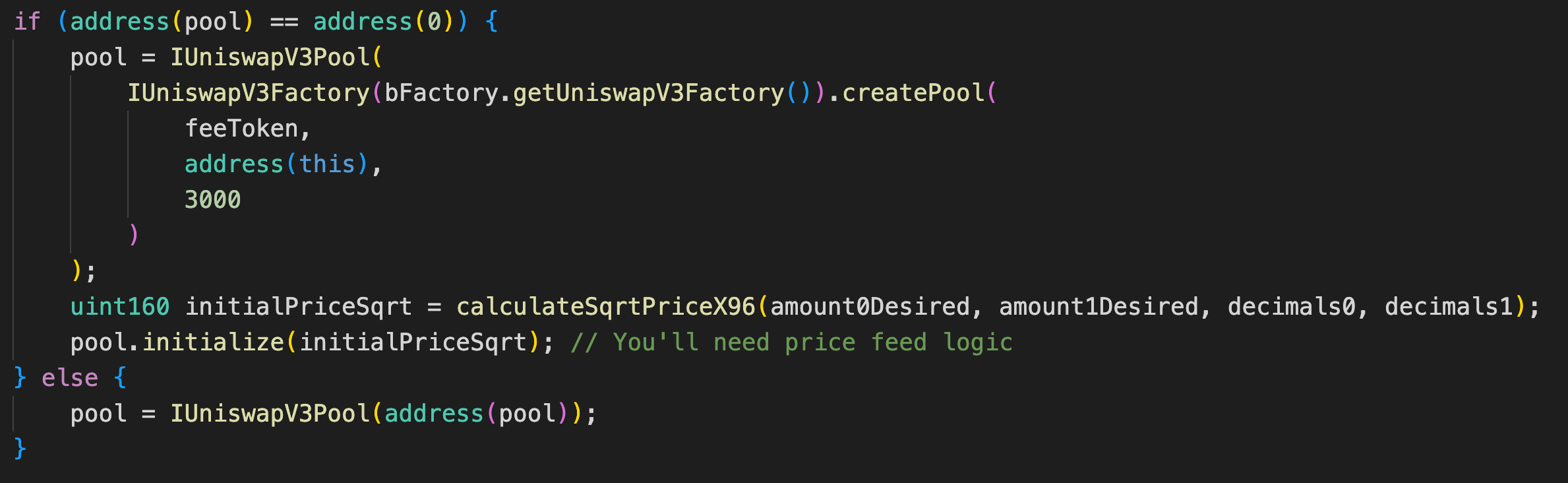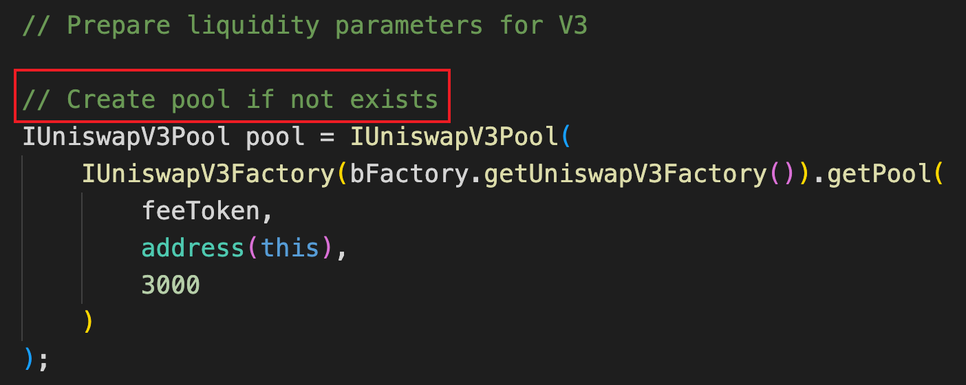 随后检查需要添加流动性的 [Bonding, LBM] pool ,通过注释可以看出,项目方是故意先不部署池子的,等到实际触发回购机制的时候再创建,这就给了攻击者可乘之机。