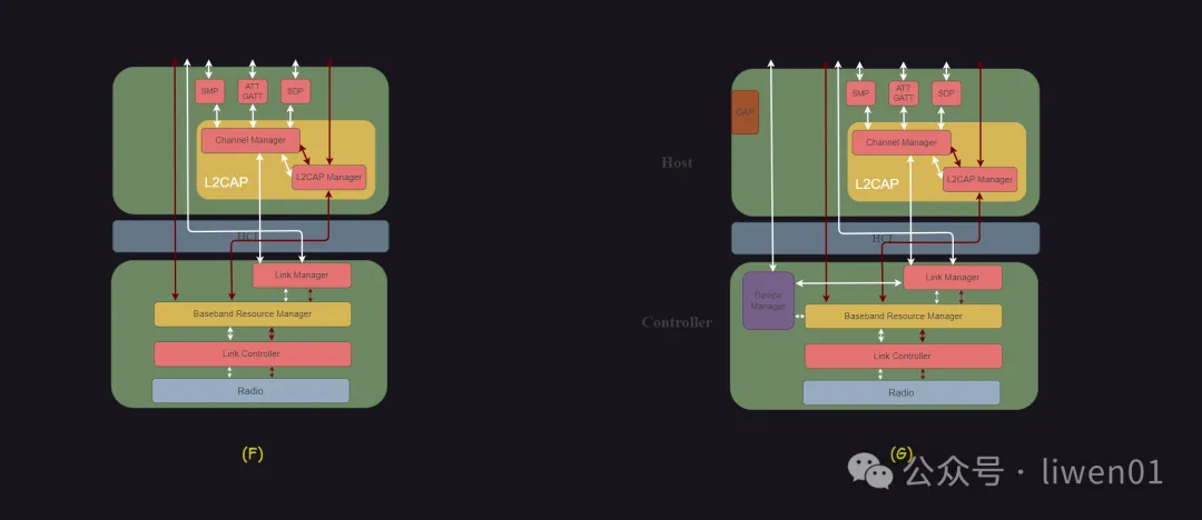 这就出现了 Link Manager、 Link Controller 与 L2CAP 模块