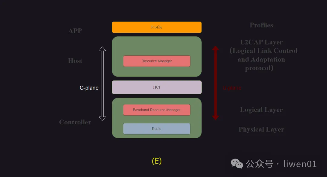 C-plane: 主要用于处理蓝牙协议栈中的控制信息,包括设备管理、链路管理、信道控制、流量调度、功率控制、设备发现等。