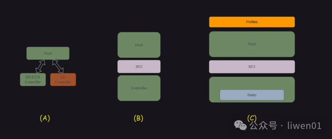 Controller 通常集成在一个蓝牙芯片中(有时称为 Bluetooth SoC),负责底层无线通信功能。