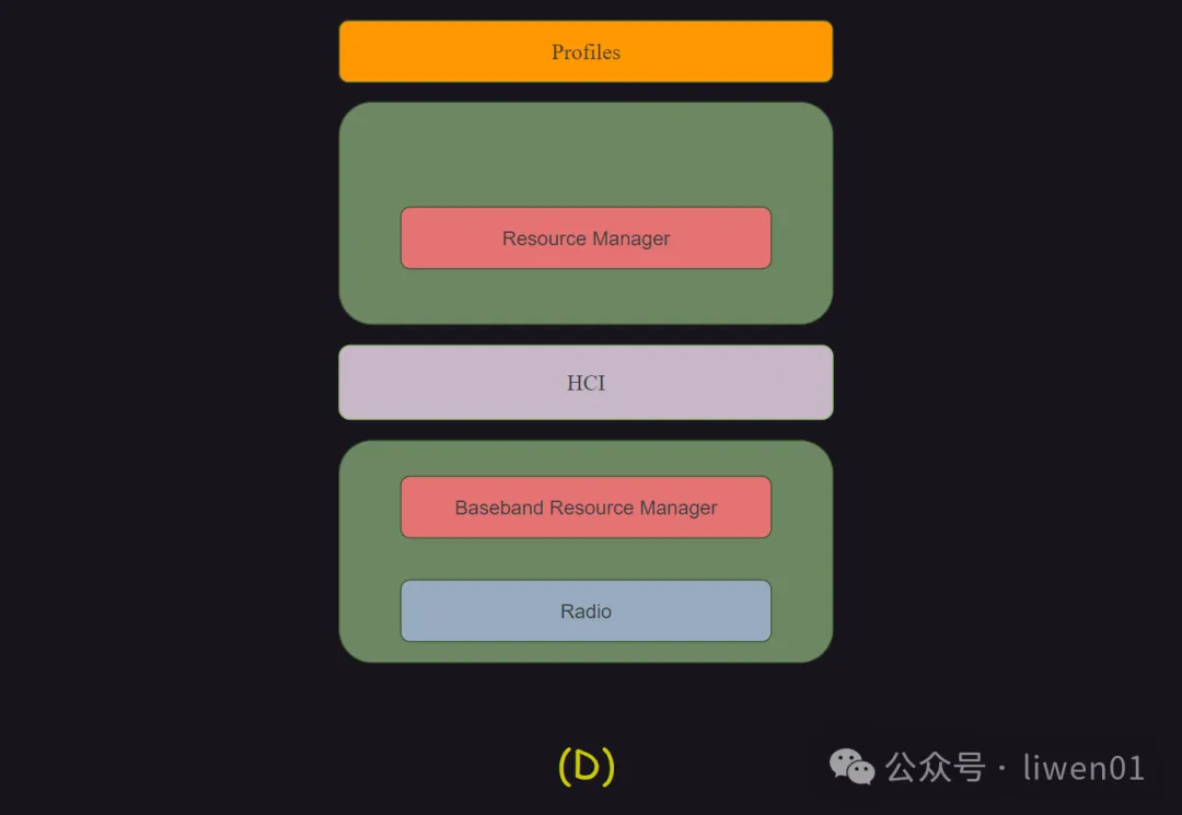 Baseband Resource Manager 是蓝牙控制器中专门用于管理基带层资源的模块。基带是蓝牙协议栈的底层部分,直接控制无线链路的建立与维护。