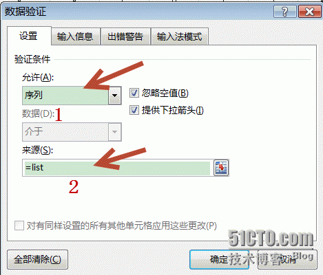 打开如下数据验证窗口,将“允许”窗口选择为“序列”,在“来源”窗口直接等于刚刚创建好的“List”,如下:
