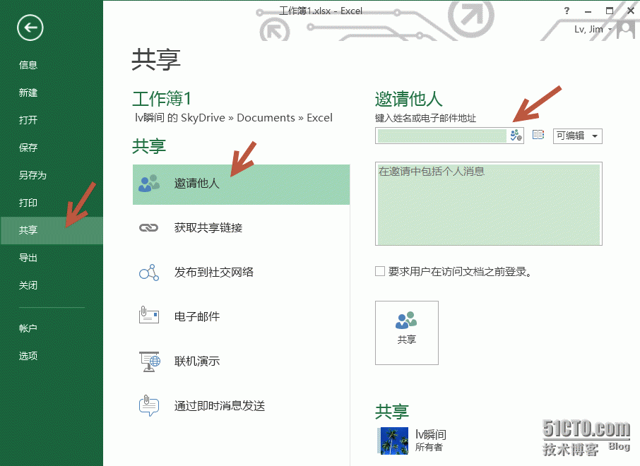 当文档保存至SkyDrive之后,我们则可以通过电子邮件共享该文件,让所有人都可以访问该文件,只要成员能够连接上Internet,他都能够通过电脑或者移动设备去更新该文件。