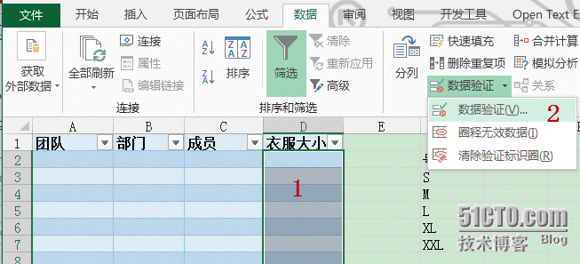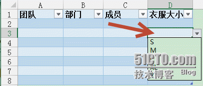 我们知道,衣服的大小一般都是分为M,S,L,XL,XXL等,为了统计的方便,我将定义衣服大小为一个列表,让团队成员在这一个列表去选择,所以,这里,我使用到了数据有效性。