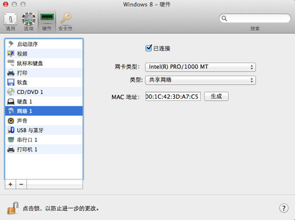 4. 如果您不确定使用什么适配器或者使用什么适配器都没什么影响,您可按右边的生成按钮。 将为您的虚拟机生成一个有效的 MAC 地址。