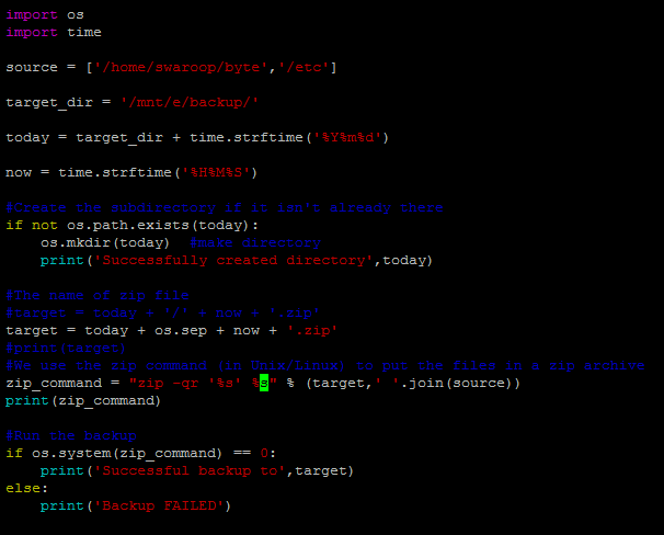 os.exists函数检验在主备份目录中是否有当前日期作为名称的目录,如果没有,我们使用os.mkdir函数创建;