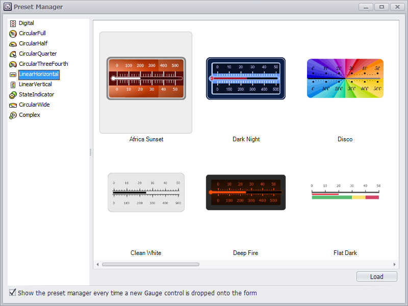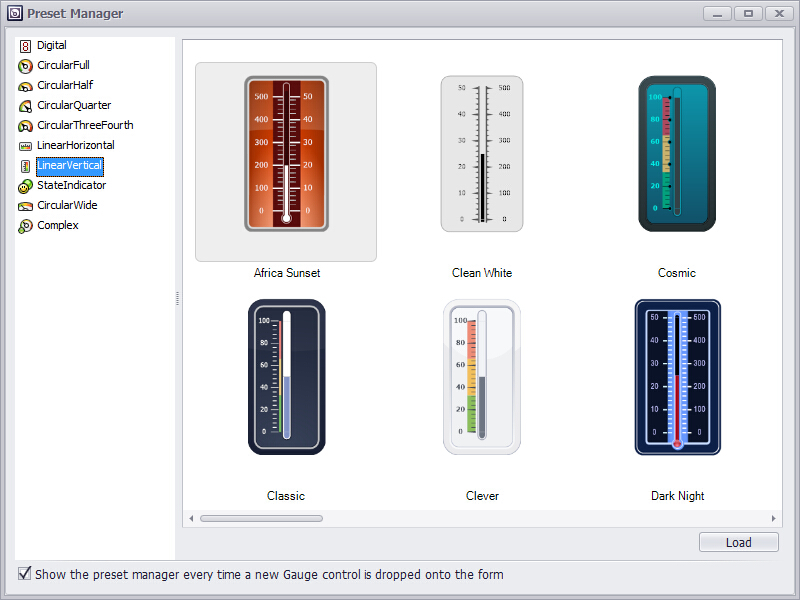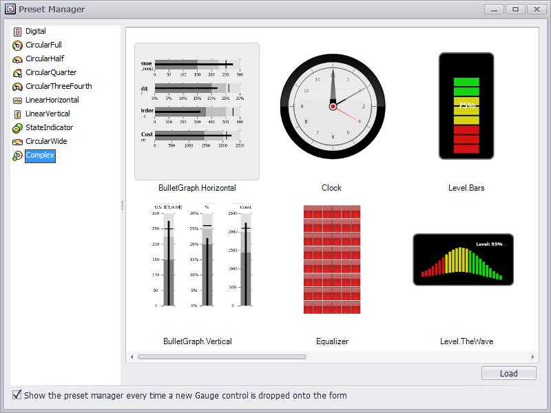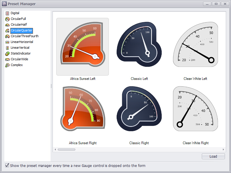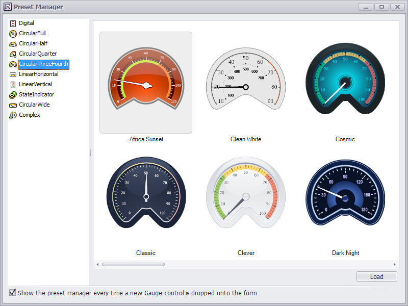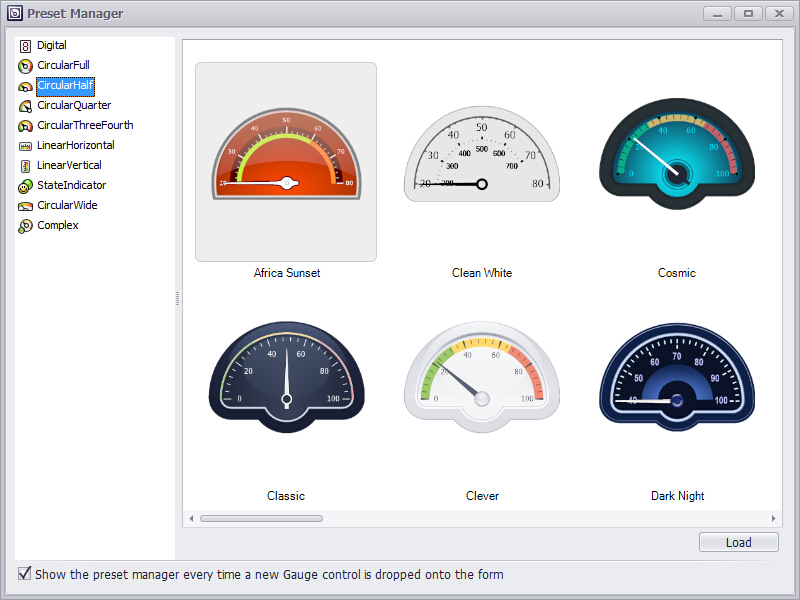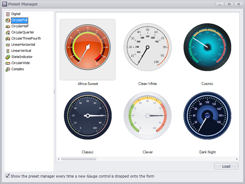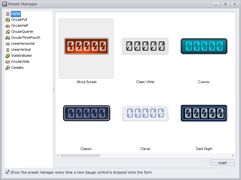 是不是感觉挺炫?呵呵。在这里面,我们用的就是GaugeControl里面的的第一个组件形式:Digital。选择后添加到窗体中。
