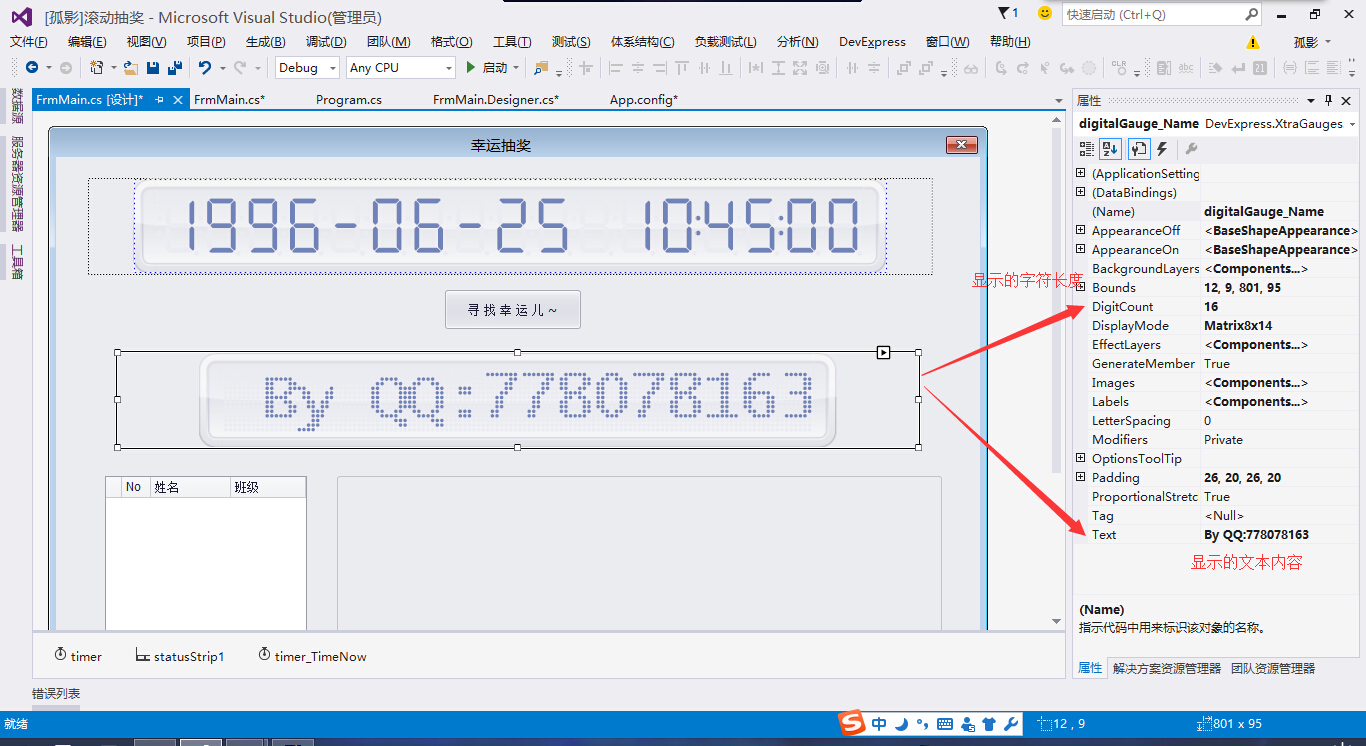 本文介绍如何利用DevExpress的GaugeControl组件实现一个抽奖程序,包括数字滚动、汉字拼音转换等功能,并分享了完整的示例代码。