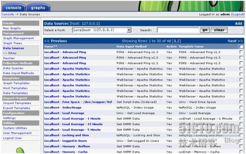 Data Sources——管理rrd文件。一般无需修改,Cacti会自己创建rrd文件;