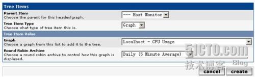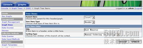 首先添加一个root节点,“Tree Item Type”中选择“Header”,“Title”中填写一个合适的描述性信息,如本例填写“Host Monitor”,Host Monitor节点的图像主要是和主机性能相关的一些图像,如CPU、内存、磁盘空间等;