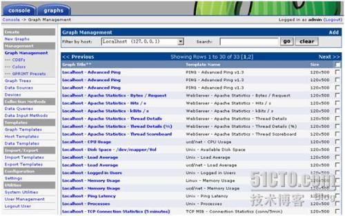 Graph Templates 、Host Templates和Data Templates 分别是图像模板、主机类型模板和数据模板。这些模板可以导出、导入也可以自己编写,一般无需修改。