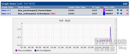 点击“Graph Management”可以看到刚才创建的监测点对应的图像,注意由于Cacti默认每5分钟到监测服务器上取一次数据,所以刚创建的监测点会出现图像不能显示的现象,需要等几分钟查看才会正常显示。