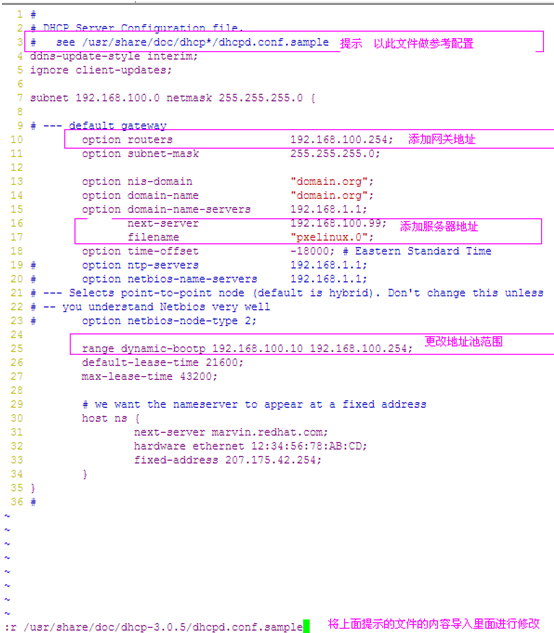 进入/etc/dhcpd.conf文件,并对其进行编译