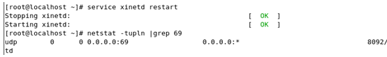 netstat -tupln |grep 69 查看69号端口的开放情况