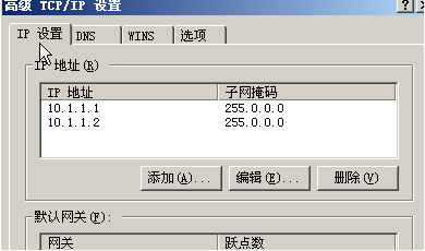 网卡:在TCP/IP属性高级中,添加IP 10.1.1.2