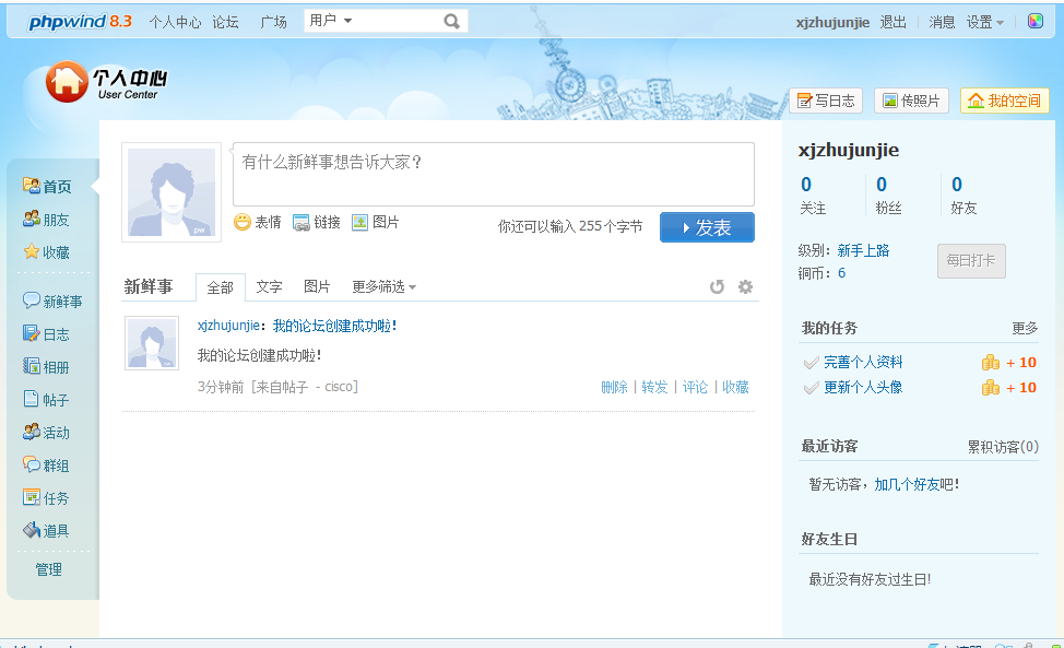 网站客户可以进行注册,登录,发帖等活动!图示如下: