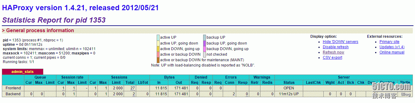 stats uri /stats #统计页面url