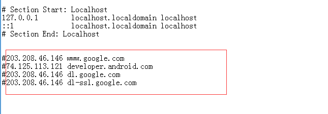 1、可以修改hosts文件,把选中的前面的# 去掉