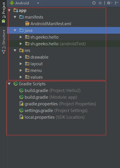 第一幅图是Android Studio 的目录结构,第二幅图是Eclipse的目录结构,整体上来说结构差别还是有点大的,在这里可能有人就要问了,我用Eclipse创建的Project,是否可以在Android Studio中开发呢? 这个肯定是可以的,这个会在下一章节中讲到