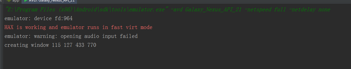 这里提示模拟器已经在运行,在第一次运行的时候,模拟器是有点慢,大概在30秒左右才能启动