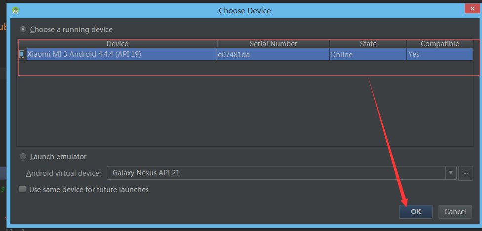 3、在Android Studio 中去检查下,是否连接上了你的真机