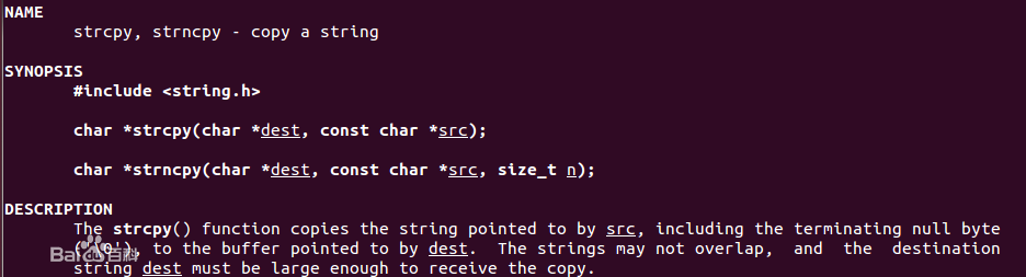 C语言标准库函数strcpy,把从src地址开始且含有NULL结束符的字符串复制到以dest开始的地址空间。