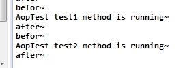 小例子中加了个切面,在方法执行前后打印before和after字符串,如下图,工作正常,代码参考前面部分: