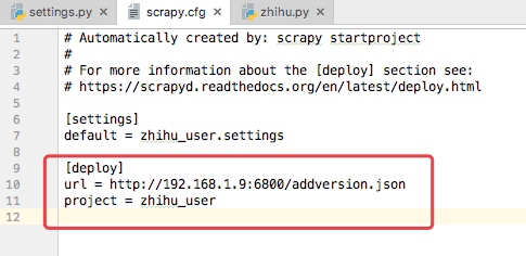 我们将我们本地的scrapy项目中scrapy.cfg配置文件进行配置: