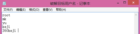 注:密码库又名“字典”,此字典可不是你手中的字典。而是集中网络中大多数密码而形成的密码库。有很多人会在网上登录各种各样的网站,由于习惯性的心理,都会输入自己常用的账户名和密码,有很多合法或非法的网站都被***们留下了后门,他们可以直接从网站中的后台查到各式各样的密码和用户名,这就提醒了各位,你在网上某些网站上登录的用户名和密码就成为了***们密码库的“幕后推手”。因此想要破解,直接进行不断的测试,一天,两天,日夜不停。此密码库可以直接在网上搜到,整合就OK。