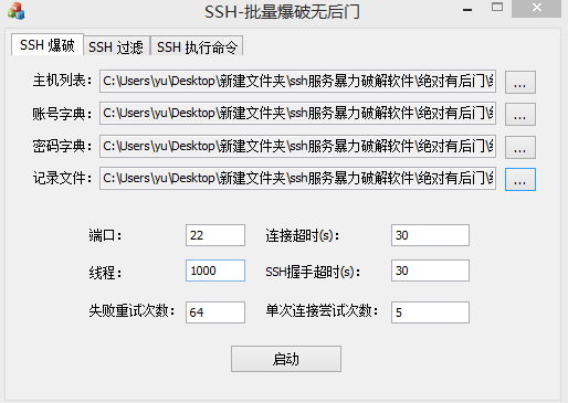 注:找来的破解软件,肯定被编写者留下了后门,所以为了便于安全和测试,我只能用虚拟机上的XP系统和Linux系统来进行测试,Linux系统上的账号密码都设置简单点,便于快速出现结果。